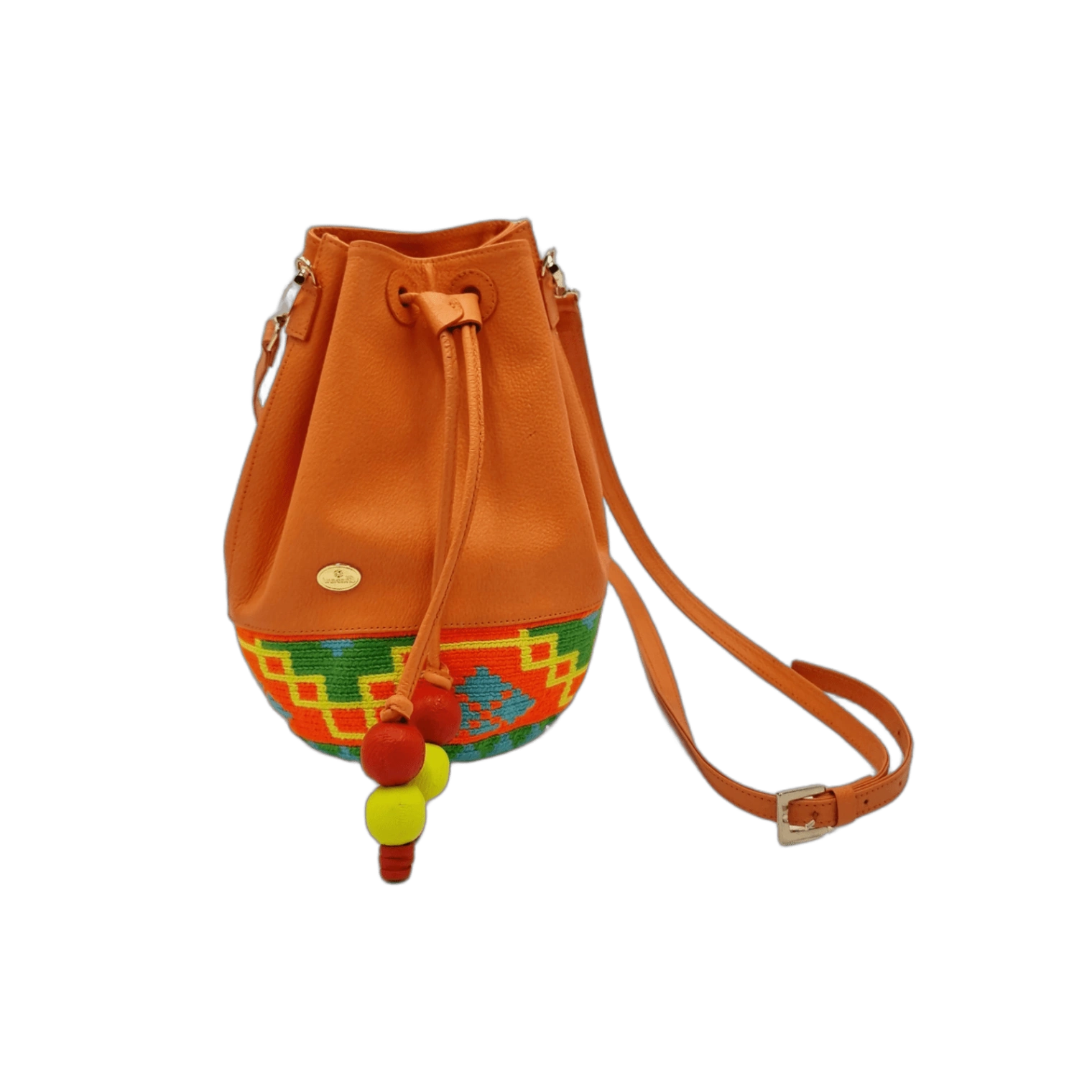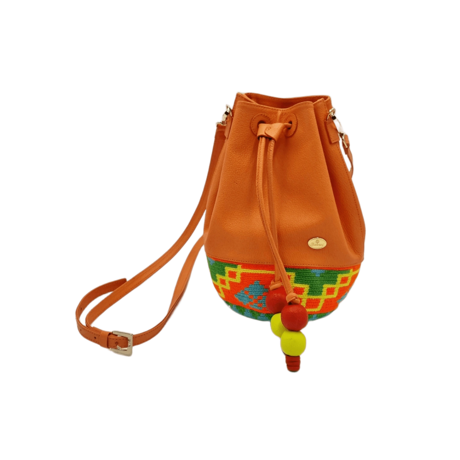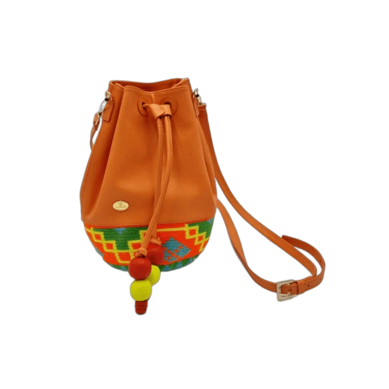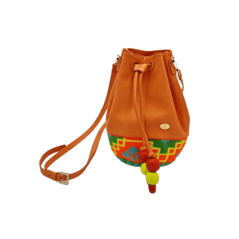 BOLSA CUERO X TEJIDO WAYU APLIQUE PEPAS
