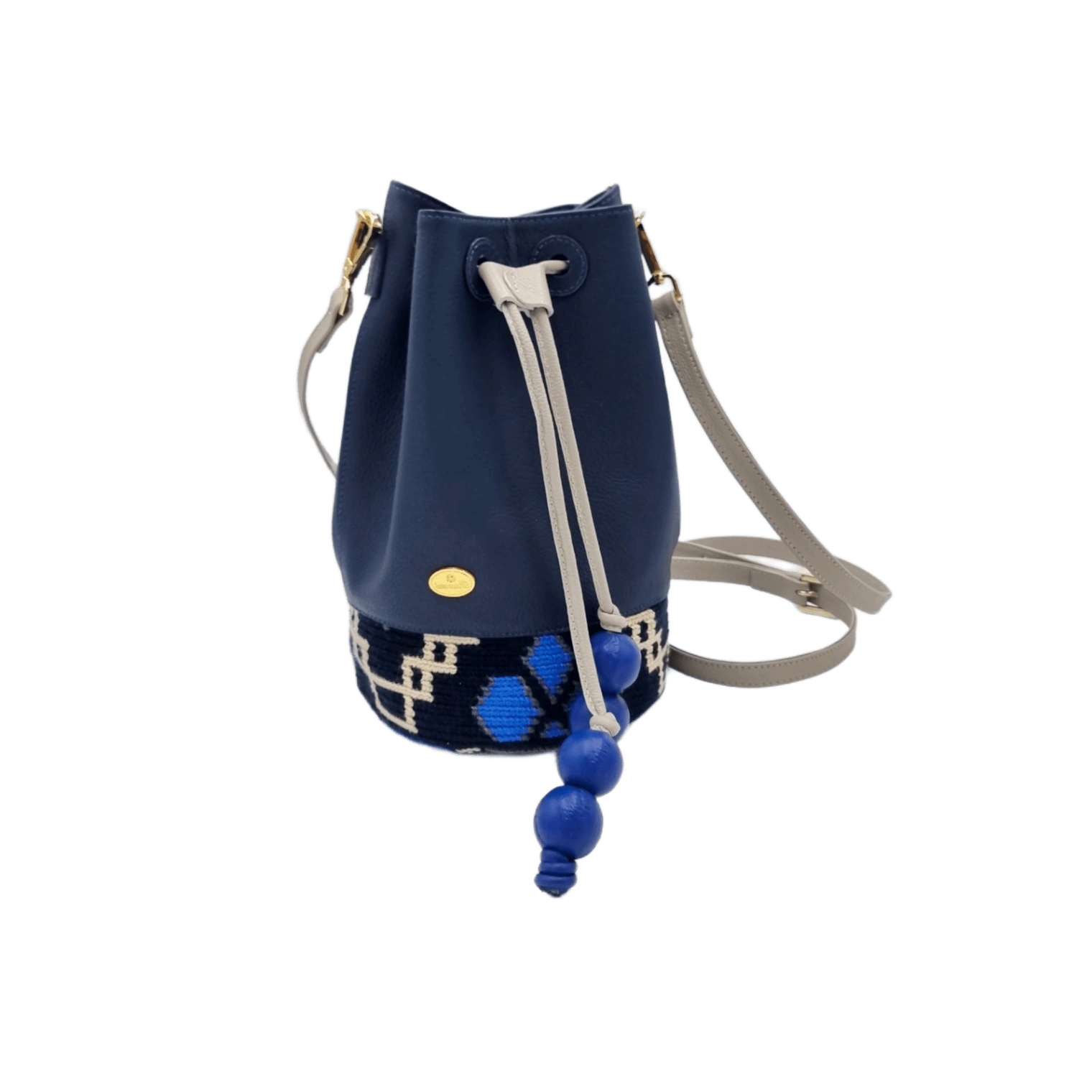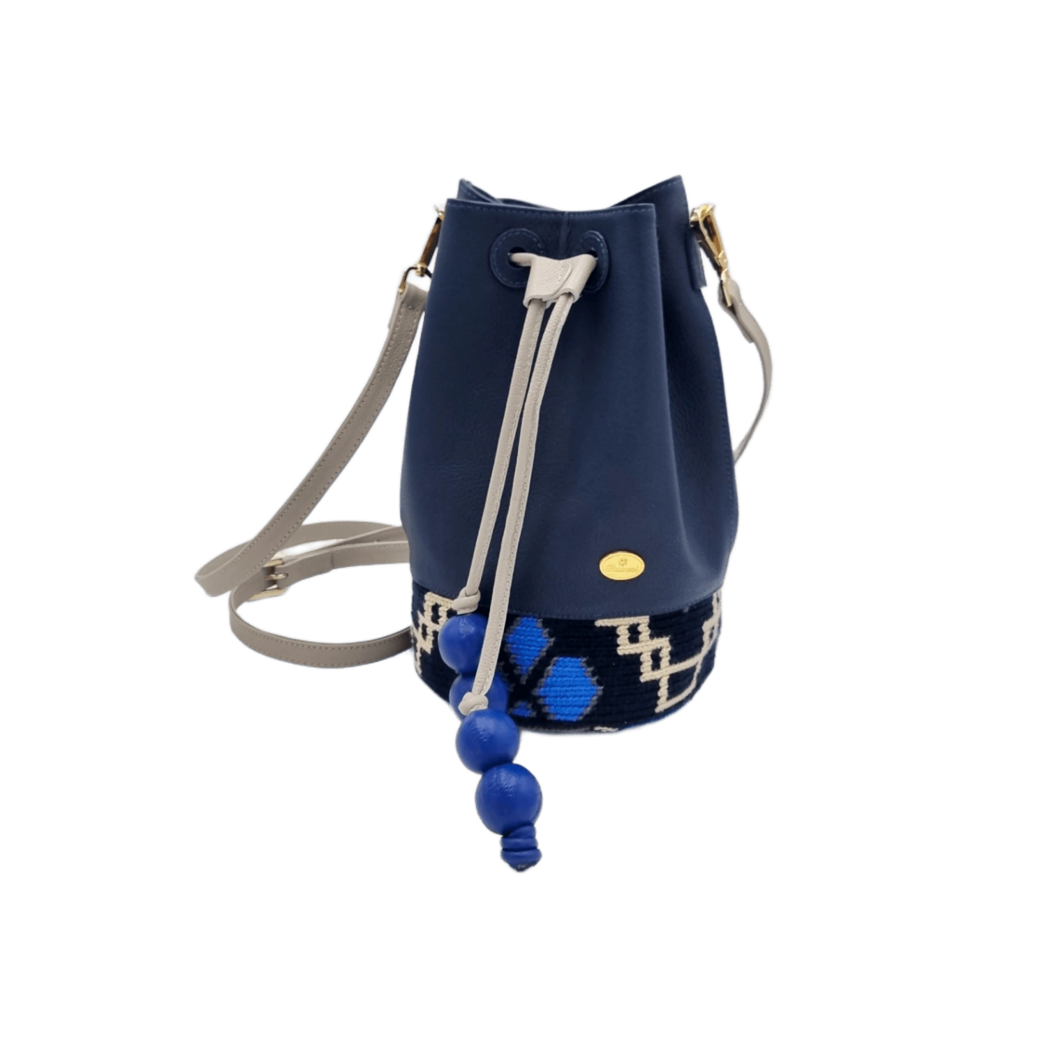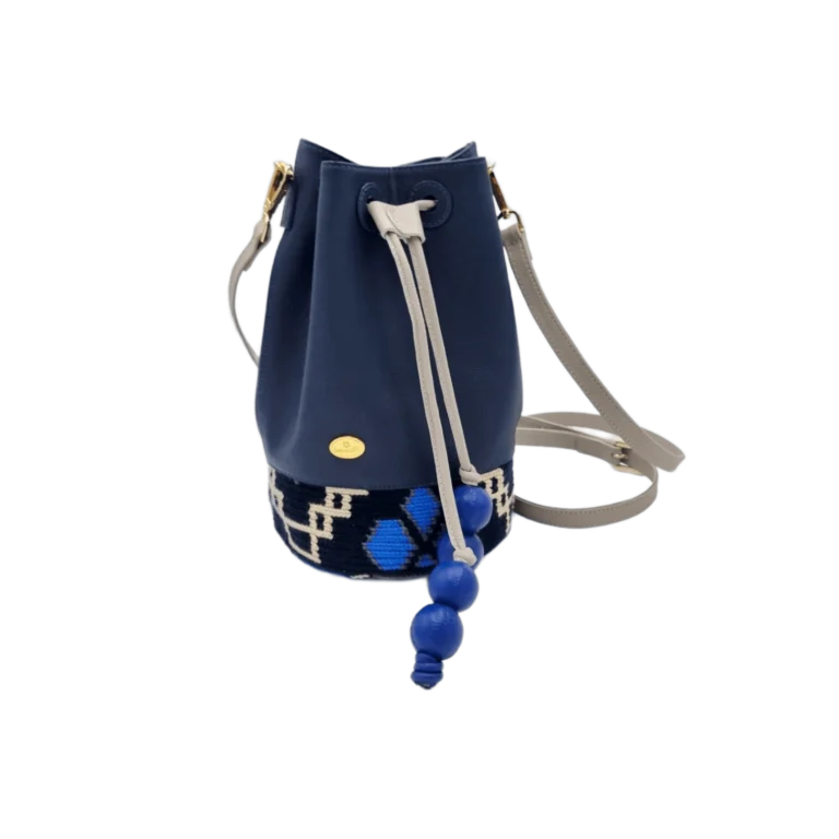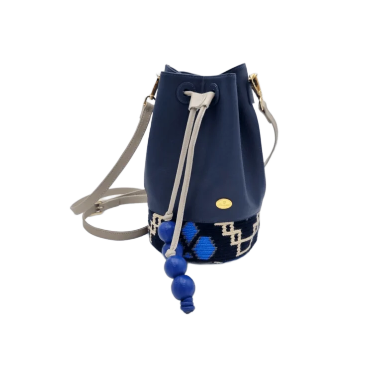 BOLSA CUERO X TEJIDO WAYU APLIQUE PEPAS