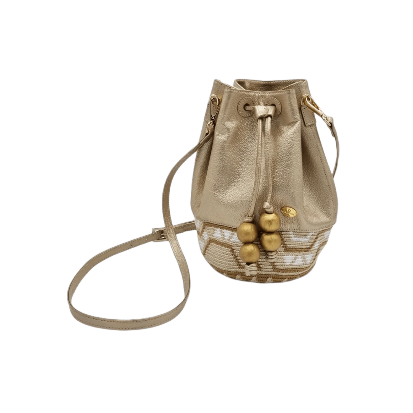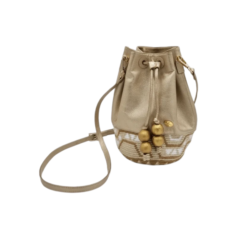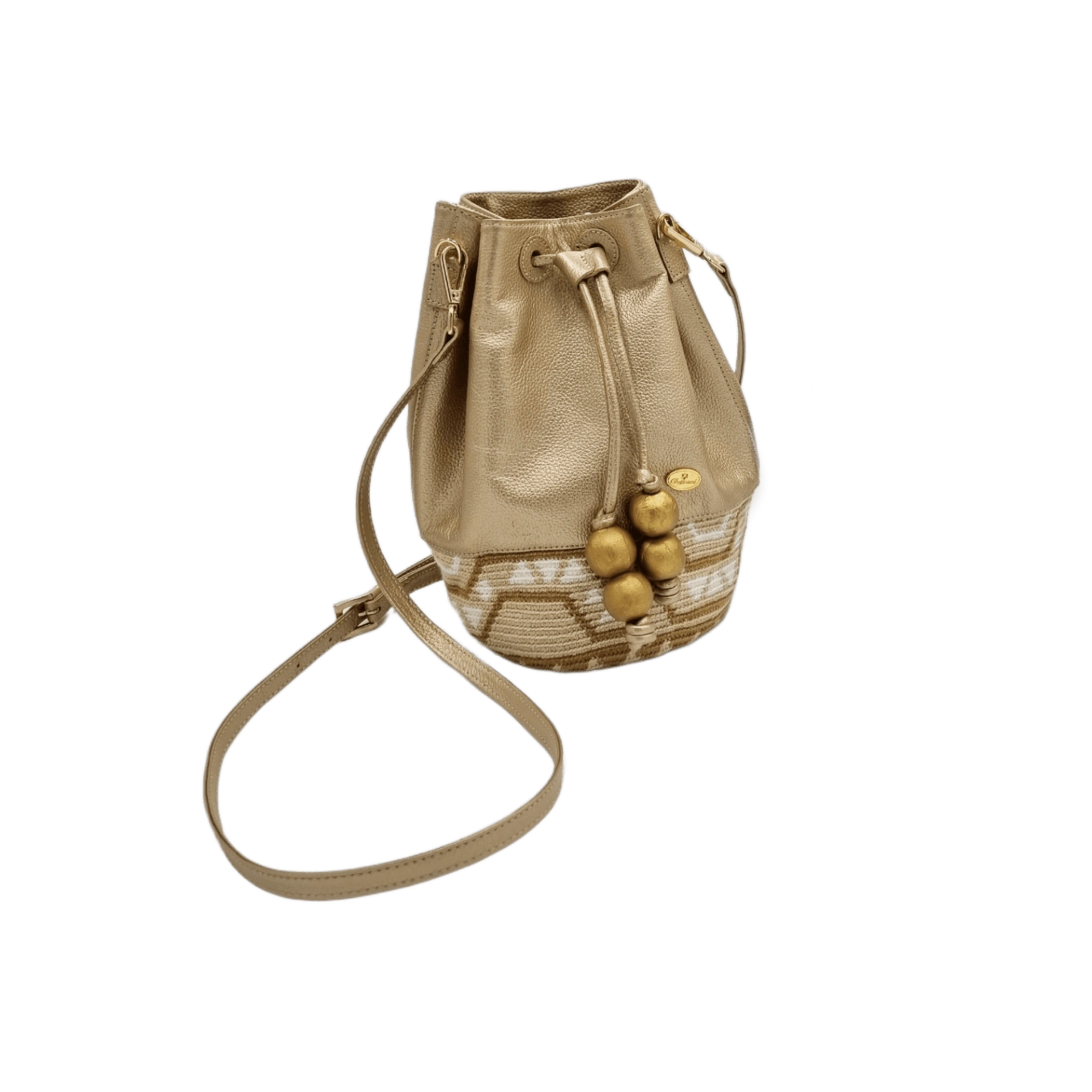 BOLSA CUERO X TEJIDO WAYU APLIQUE PEPAS