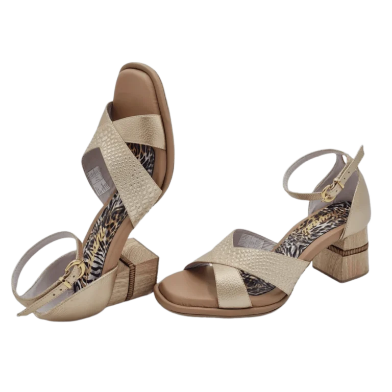 / SANDALIA DORADO TACON MADERA 5 1/2
