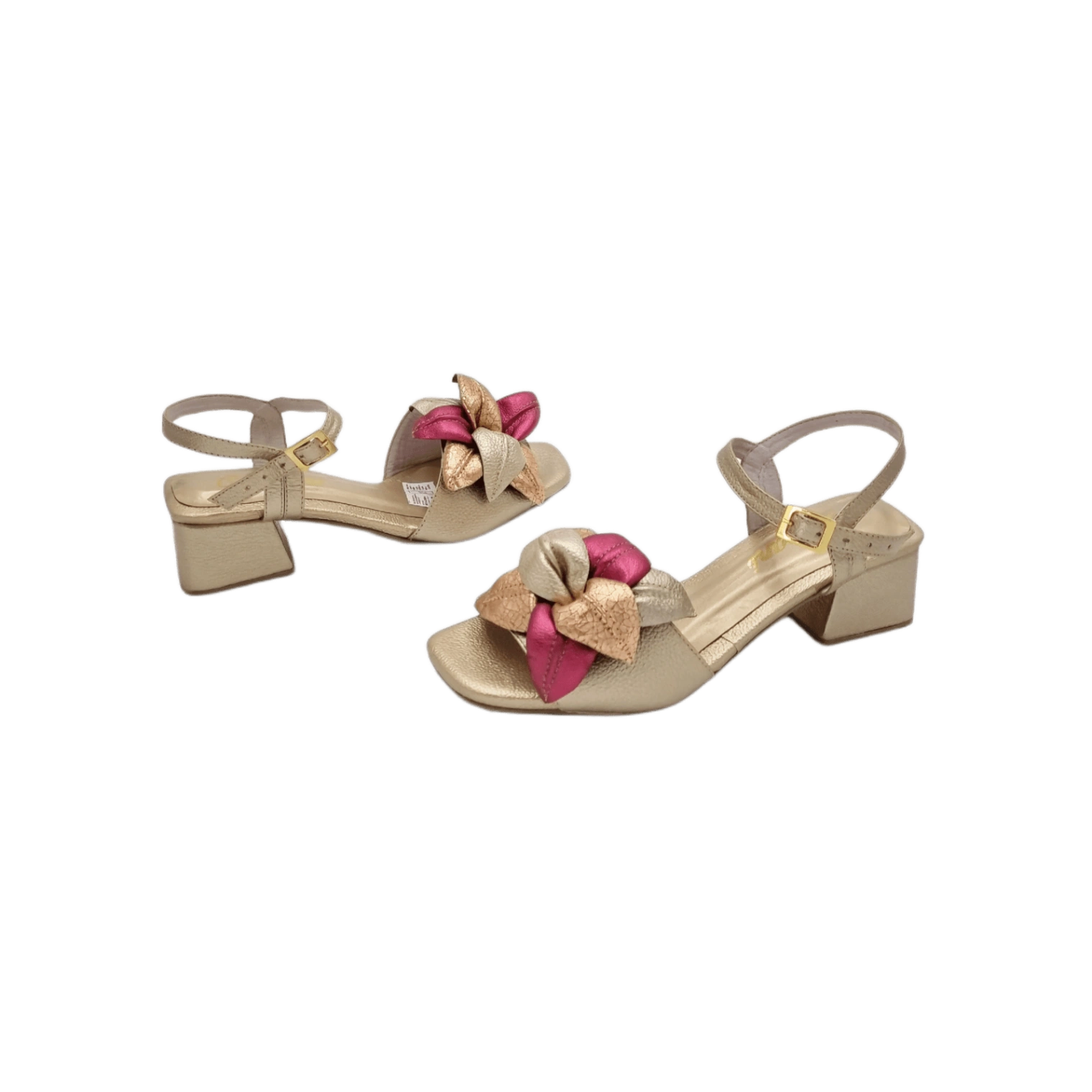 SANDALIA ORO X FLOR METALIZADA 3 1/2