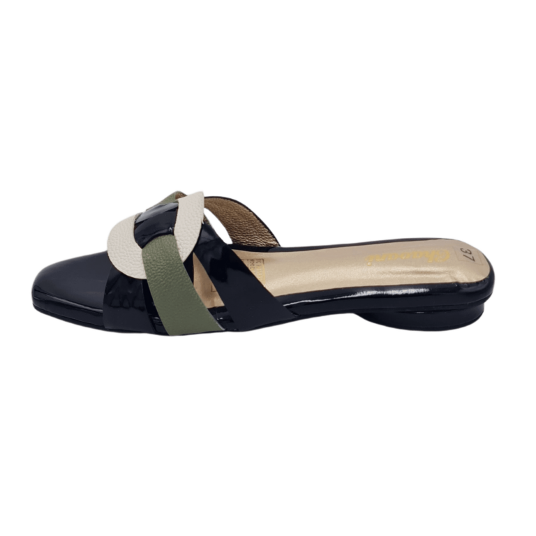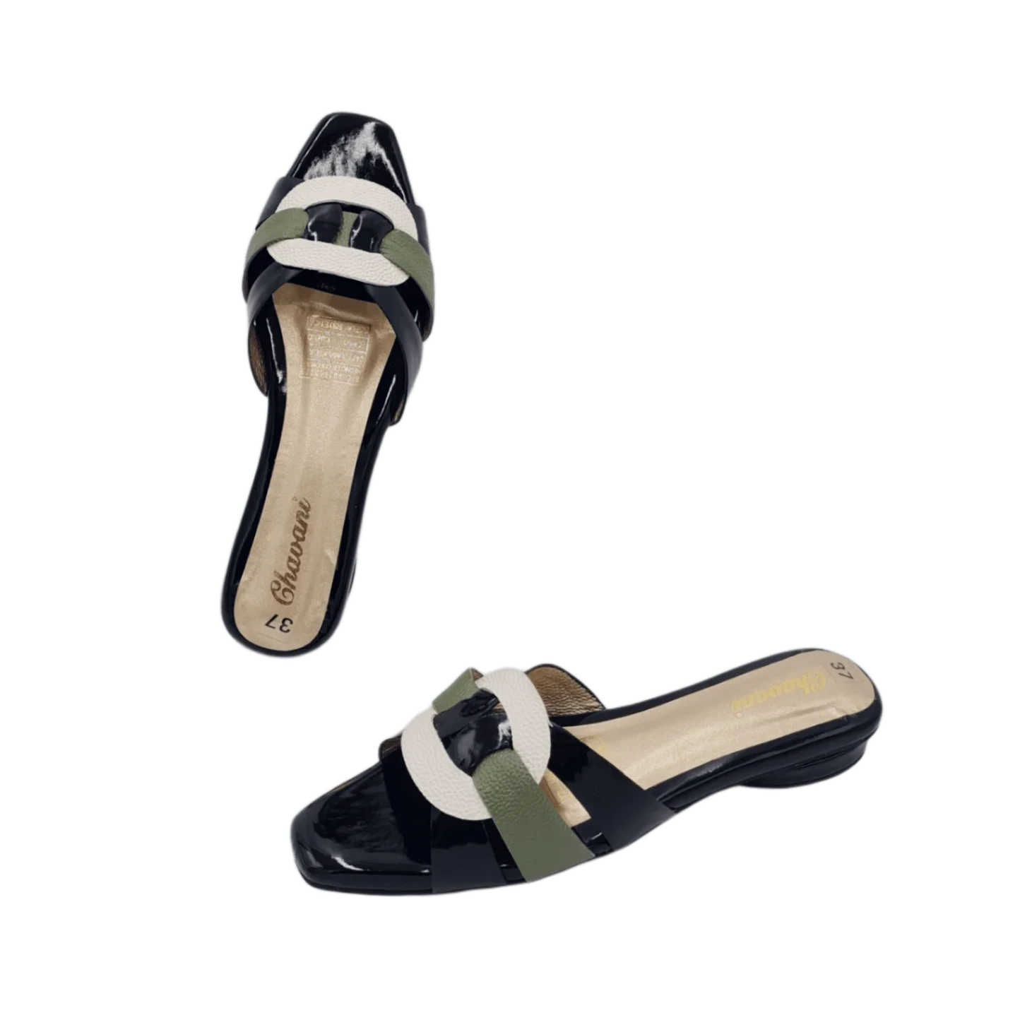 ZUECA PLANA CHAROL NEGRO X VERDE X TALCO